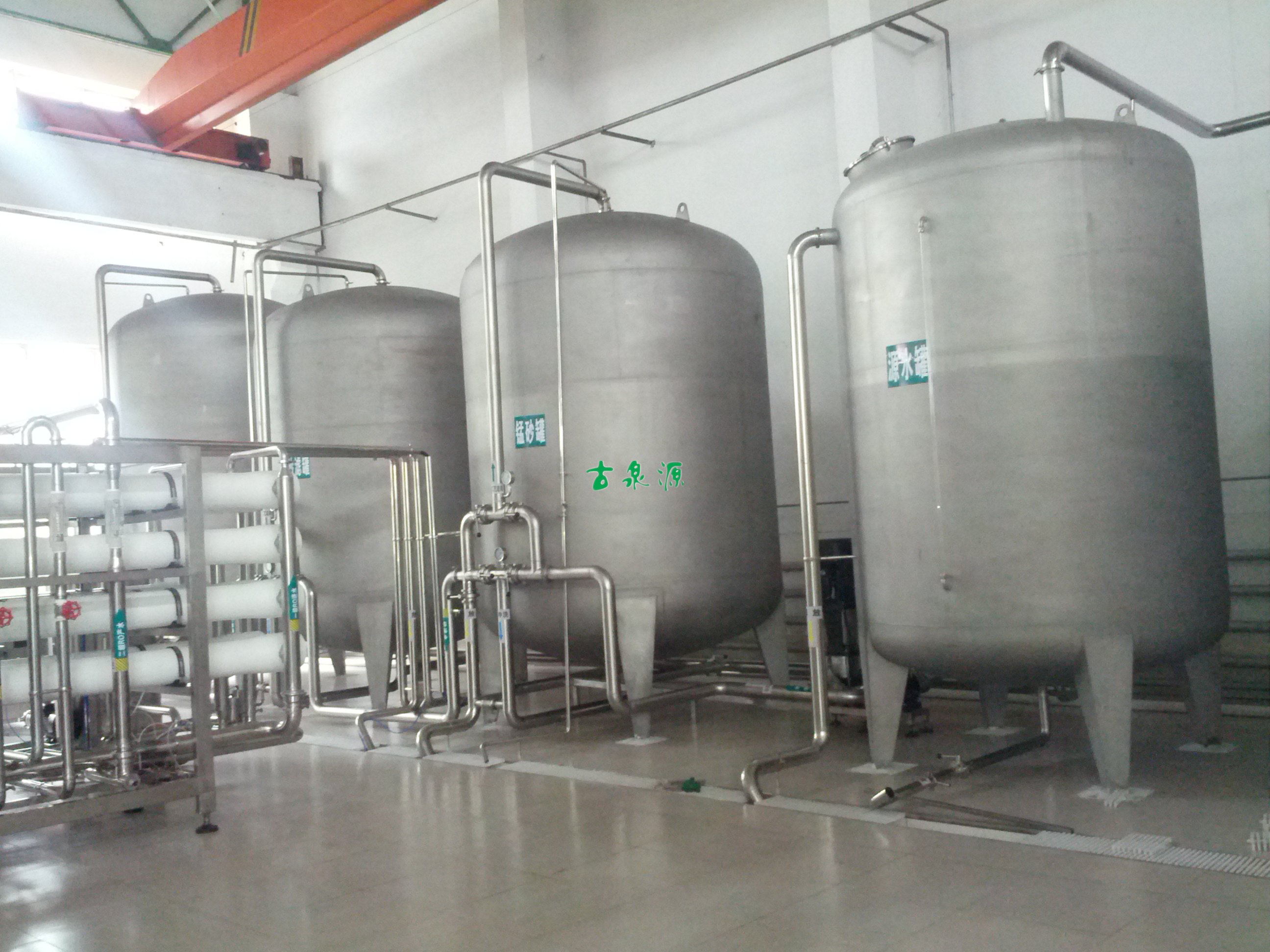 該公司為某大型桶裝水廠的純凈水設(shè)備,出水要達(dá)到國家桶裝水的標(biāo)準(zhǔn)。我們給設(shè)計(jì)了反滲透凈水方案,前期預(yù)處理為錳沙和活性炭,并且為反滲透膜配備了加藥(阻垢劑)系統(tǒng),以保護(hù)膜并延長其使用壽命。自動(dòng)控制方面采用了西門子PLC并配備了人際界面進(jìn)行操作。整套設(shè)備的運(yùn)行使用方面無需任何手動(dòng)操作。真正實(shí)現(xiàn)了量產(chǎn)飲用水的目的。